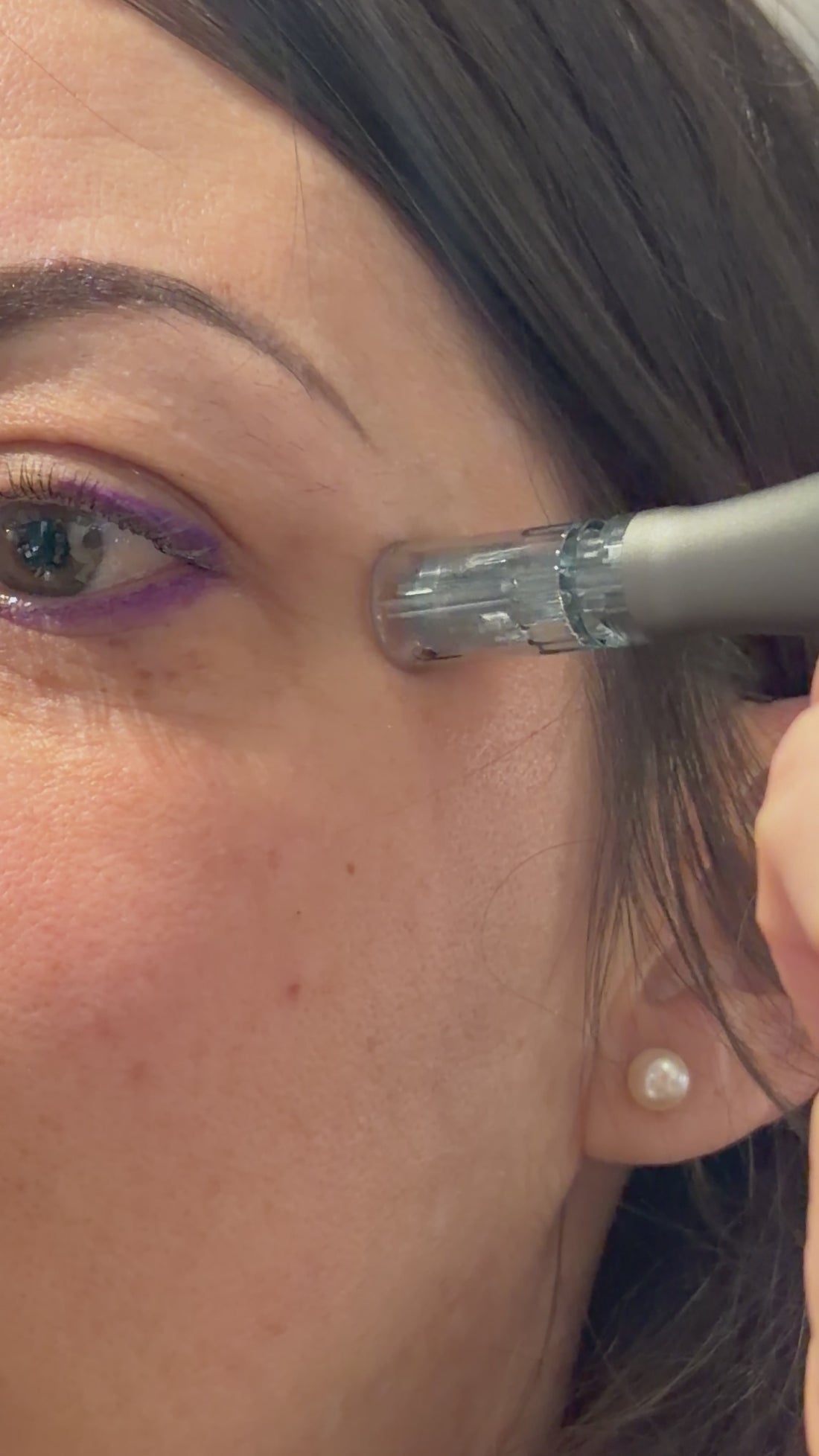 Traiter les zones avec le dermapen en mouvement circulaire et linéaire et environ 3 passages sur la même zone.